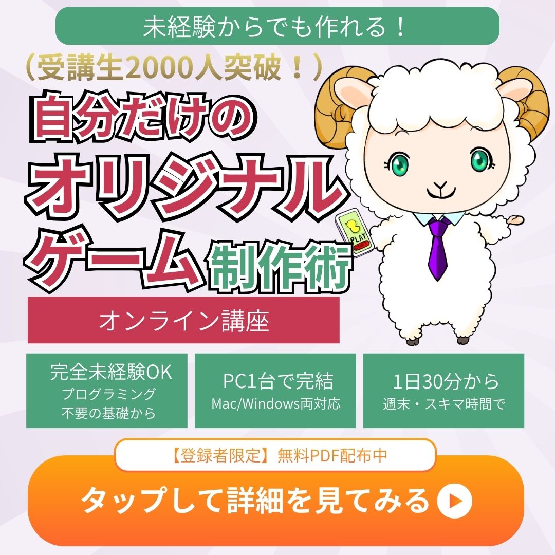 【ゲームの作り方講座もプレゼント中!】