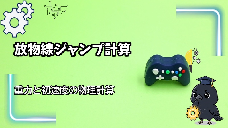 この記事では、放物線ジャンプの計算として、重力と初速度の物理計算を見ていきましょう。